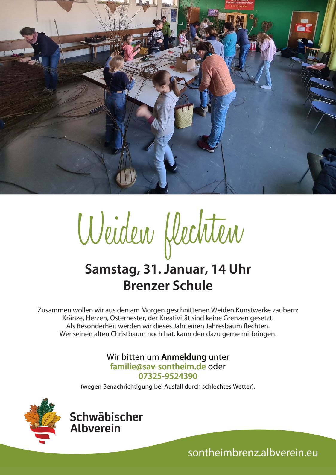 Als Besonderheit werden wir dieses Jahr einen Jahresbaum flechten. Wer seinen alten Christbaum noch hat, kann diesen hierzu mitbringen. Wir werden daraus eine schöne Etagere bzw. einen Jahresbaum flechten. Dieser kann dann zuhause ganz wundervoll bepflanzt und somit das ganze Jahr weiterverwendet werden.